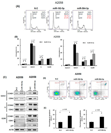 2.3. miR-192-5p and miR-584-3p Suppressed Melanoma Cell Growth
