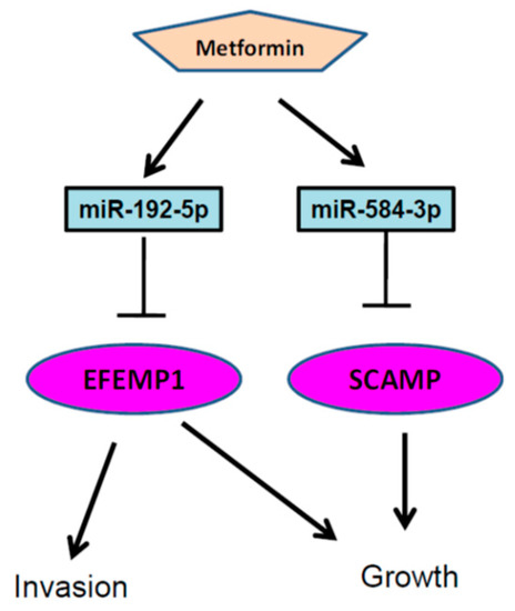 In conclusion, our study demonstrated that metformin treatment suppressed melanoma cell growth and invasion ability, which might be accomplished partially through the modulation of both miR-192-5p/EFEMP1 and miR-584-3p/SCAMP3 axes. Our findings provide new insights into melanoma cancer therapy in the future.