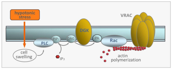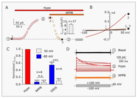 - Pedersen, S.F.; Okada, Y.; Nilius, B. Biophysics and Physiology of the Volume-Regulated Anion Channel (VRAC)/Volume-Sensitive Outwardly Rectifying Anion Channel (VSOR). Pflug. Arch. 2016, 468, 371–383. [Google Scholar] [CrossRef] [PubMed]