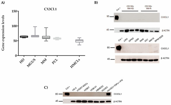 - Wada, A.; Ito, A.; Iitsuka, H.; Tsuneyama, K.; Miyazono, T.; Murakami, J.; Shibahara, N.; Sakurai, H.; Saiki, I.; Nakayama, T.; et al. Role of chemokine CX3CL1 in progression of multiple myeloma via CX3CR1 in bone microenvironments. Oncol. Rep. 2015, 33, 2935–2939. [Google Scholar] [CrossRef] [PubMed]