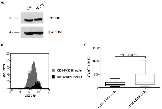 - Ancuta, P.; Rao, R.; Moses, A.; Mehle, A.; Shaw, S.K.; Luscinskas, F.W.; Gabuzda, D. Fractalkine preferentially mediates arrest and migration of CD16+ monocytes. J. Exp. Med. 2003, 197, 1701–1707. [Google Scholar] [CrossRef] [PubMed]
