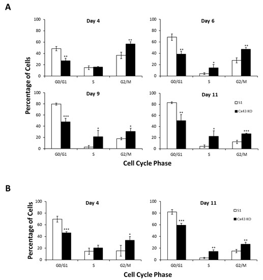 2.1. Silencing Cx43 Triggers Cell Cycle Entry and Enhances the Proliferation Rate
