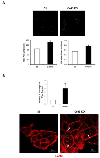 2.4. Silencing Cx43 Induces Motility and Invasion