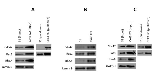 2.5. Silencing Cx43 Activates Rho GTPase Signaling
