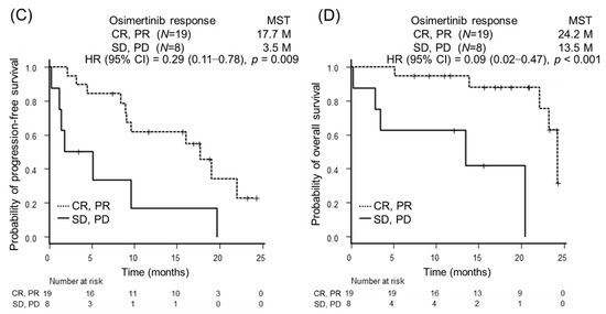 | Osimertinib response | CR/PR | 15 (88.2) | 4 (40.0) | 0.025 |