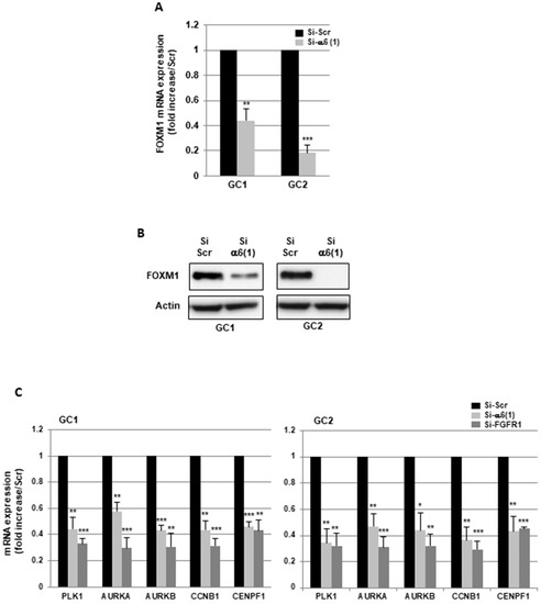 2.2. α6-Integrin and FGFR1 Cooperate in GBMSC to Regulate Cell Cycle and Proliferation