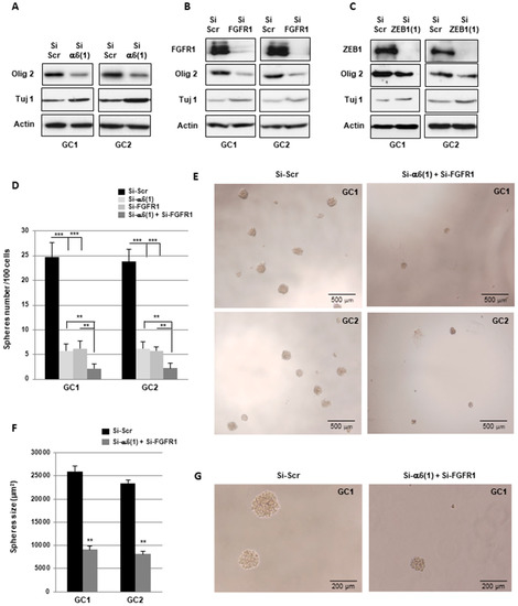 2.4. α6-Integrin and FGFR1 Cooperate in GBMSC to Regulate Neurospheres Formation and Stemness