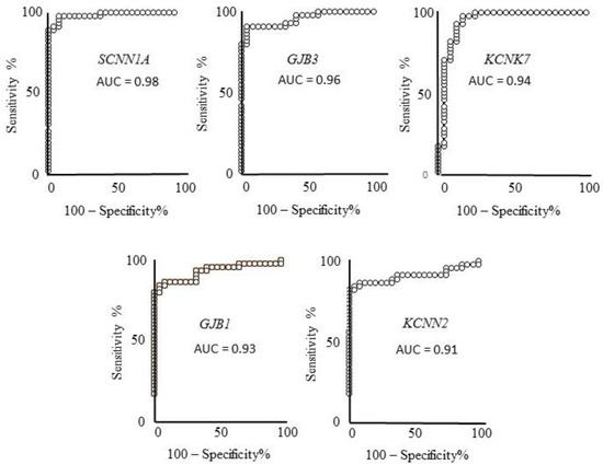 | 4 | GJB5 | 3.4 × 10−13 | 0.1277 | 0.97 | ||||