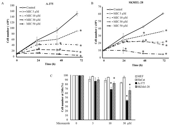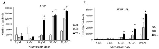 - Wu, C.-H.; Jeng, J.-H.; Wang, Y.-J.; Tseng, C.-J.; Liang, Y.-C.; Chen, C.-H.; Lee, H.-M.; Lin, J.-K.; Lin, C.-H.; Lin, S.-Y.; et al. Antitumor effects of miconazole on human colon carcinoma xenografts in nude mice through induction of apoptosis and G0/G1 cell cycle arrest. Toxicol. Appl. Pharmacol. 2002, 180, 22–35. [Google Scholar] [CrossRef]