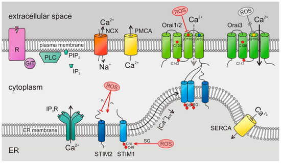 ROS have recently been in the focus of TME research because, depending on their concentrations, ROS may be decisive for the life and death of cancer cells [12,13]. Since Orai1 and Orai2 but not Orai3 channels are strongly regulated by ROS [14,15,16], Orai channels are interesting targets to integrate Ca2+ influx and ROS signaling in the TME. In this review, we focus on the interactions of Orai channels and ROS in the TME and on their potential relevance for TME development. We propose a scenario where redox changes alter Orai function and Ca2+ influx in both malignant and nonmalignant cells, such as immune cells, resulting in changes in (Ca2+)int with a direct impact on tumor fate.