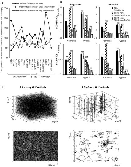 - Moncharmont, C.; Guy, J.-B.; Wozny, A.-S.; Gilormini, M.; Battiston-Montagne, P.; Ardail, D.; Beuve, M.; Alphonse, G.; Simoëns, X.; Rancoule, C.; et al. Carbon ion irradiation withstands cancer stem cells’ migration/invasion process in Head and Neck Squamous Cell Carcinoma (HNSCC). Oncotarget 2016, 7, 47738–47749. [Google Scholar] [CrossRef]