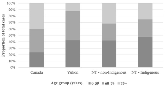 The northern populations available for comparison in this analysis are the NT population dichotomized as Indigenous or non-Indigenous, and the YT population without classification by Indigenous status. As a reference population, we use the total population of Canada, including the NT and YT populations, without classification by Indigenous status. In 2016, Indigenous groups comprised approximately 51% of the NT population of 41,135, 23% of the YT population of 35,110, and 4.9% of the total Canadian population of 34,460,065 [43]. Sex-specific frequencies were available for all comparison populations. Classification by Indigenous status was available for the NT population, but not for the YT or total Canadian populations. NT residents were dichotomized as Indigenous, including individuals who identify as Inuit, First Nations, or Métis, or non-Indigenous, including everyone else.