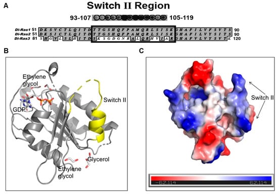 The DIRAS family proteins (DIRAS1, 2, and 3) share 50%–60% sequence homology, where DIRAS1 and DIRAS2 differ primarily from DIRAS3 in the truncation of the 34-amino acid N-terminus and in the switch II region sequence [