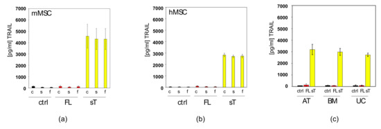 66. Mueller, L.P.; Luetzkendorf, J.; Widder, M.; Nerger, K.; Caysa, H.; Mueller, T. Trail-transduced multipotent mesenchymal stromal cells (trail-msc) overcome trail resistance in selected crc cell lines in vitro and in vivo. Cancer Gene Ther. 2010, 18, 229–239. [Google Scholar] [CrossRef] [PubMed]
