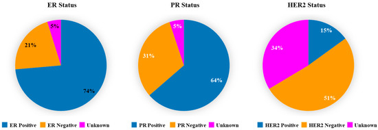 2.2. Expression of ER, PR, and HER2 in Breast Cancer Tumors