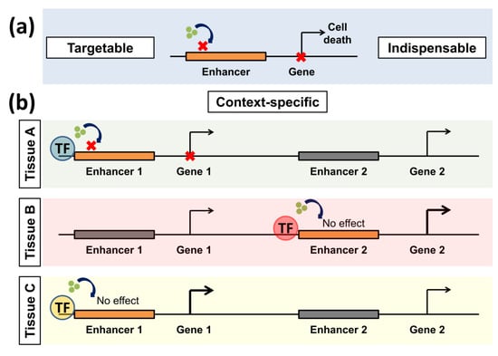 One of the major characteristics of a subgroup of enhancers is context-specificity. In general, enhancers direct lineage-specific transcriptional programs in a more predominant manner compared to promoters [63]. Around half of the enhancers identified in different tissues including brain, heart, ovaries, and placenta were tissue-specific [64]. Consistently, enhancers were the most distinctive identifying feature of tissue of origin upon analysis of hundreds of patient samples and human cell lines [65]. Interestingly, not only is there a distinct pattern of enhancer activation through tissues, but it was also observed that the interaction between active enhancers and their target genes are highly variable in various tissues as well [66]. Notably, interactions between enhancers and their target genes are variable in different systems and show even more tissue-specificity than differential activation of enhancers themselves, thus providing an additional layer of complexity.
