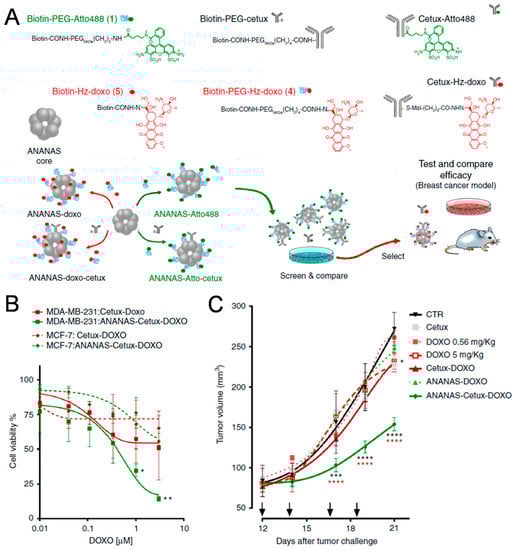 - Roncato, F.; Rruga, F.; Porcù, E.; Casarin, E.; Ronca, R.; Maccarinelli, F.; Realdon, N.; Basso, G.; Alon, R.; Viola, G.; Morpurgo, M. Improvement and extension of anti-EGFR targeting in breast cancer therapy by integration with the Avidin-Nucleic-Acid-Nano-Assemblies. Nat. Commun. 2018, 9. [Google Scholar] [CrossRef]