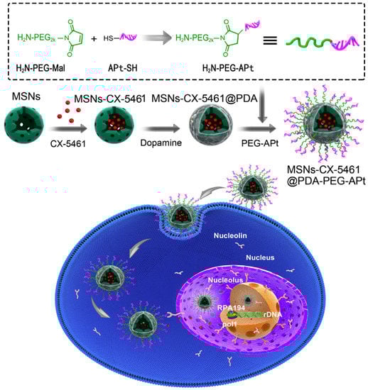 - Duo, Y.; Yang, M.; Du, Z.; Feng, C.; Xing, C.; Wu, Y.; Xie, Z.; Zhang, F.; Huang, L.; Zeng, X.; Chen, H. CX-5461-loaded nucleolus-targeting nanoplatform for cancer therapy through induction of pro-death autophagy. Acta Biomater. 2018, 79, 317–330. [Google Scholar] [CrossRef]