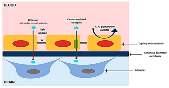 Furthermore, the achievement of therapeutic concentration of drugs in CNS is complicated by the presence of ATP-Binding Cassette (ABC) efflux transporters, a distinct set of efflux protein localized on the BBB. These efflux transporters are neuroprotective, because they limit the brain entry of neurotoxins; however, they could also restrict the entry of many therapeutics, contributing to CNS pharmacoresistance [26,27].