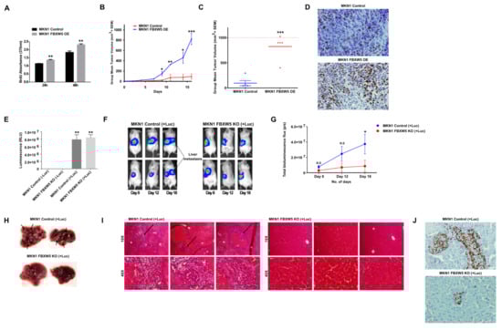 2.7. Down Regulation in In Vivo Gastric Cancer Metastasis Observed from Splenic Injection of FBXW5 Knockout Cells