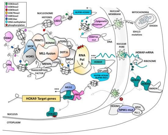 Targeting epigenetic modifiers could also prevent HOXA9 transcription in other AML sub-types. The activity of these epigenetic enzymes is modulated, for instance, through metabolites produced by mitochondrial metabolism.