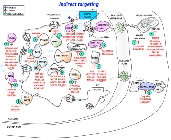 Indirect targeting of HOXA9 expression in AML: multiple epigenetic and non-epigenetic therapeutic opportunities.