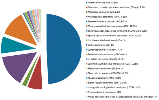 - Guzińska-Ustymowicz, K.; Niewiarowska, K.; Pryczynicz, A. Invasive micropapillary carcinoma: A distinct type of adenocarcinomas in the gastrointestinal tract. World J. Gastroenterol. 2014, 20, 4597–4606. [Google Scholar] [CrossRef] [PubMed]