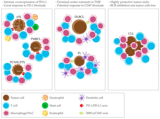- Scott, D.W.; Gascoyne, R.D. The tumour microenvironment in B cell lymphomas. Nat. Rev. Cancer 2014, 14, 517–534. [Google Scholar] [CrossRef] [PubMed]