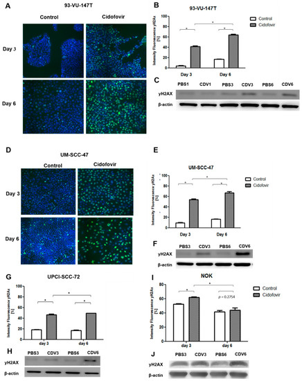 Verhees F, Legemaate D, Demers I, Jacobs R, Haakma WE, Rousch M, Kremer B, Speel EJ. The Antiviral Agent Cidofovir Induces DNA Damage and Mitotic Catastrophe in HPV-Positive and -Negative Head and Neck Squamous Cell Carcinomas In Vitro. Cancers. 2019; 11(7):919. https://doi.org/10.3390/cancers11070919