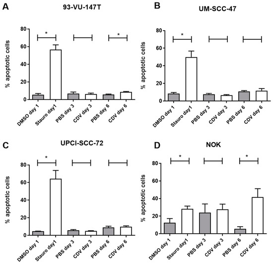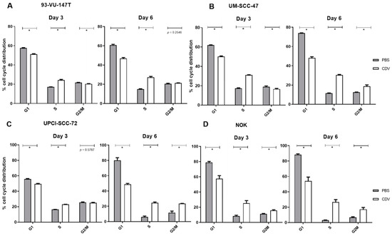 2.1. Effect of CDV Treatment on the Cell Viability of HNSCC and Uterine Cervical Carcinoma (UCC) Cell Lines