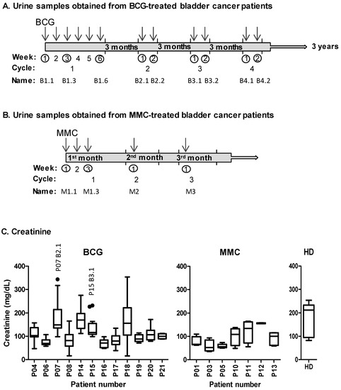 - Bisiaux, A.; Thiounn, N.; Timsit, M.-O.; Eladaoui, A.; Chang, H.-H.; Mapes, J.; Mogenet, A.; Bresson, J.-L.; Prié, D.; Béchet, S.; et al. Molecular Analyte Profiling of the Early Events and Tissue Conditioning Following Intravesical Bacillus Calmette-Guerin Therapy in Patients with Superficial Bladder Cancer. J. Urol. 2009, 181, 1571–1580. [Google Scholar] [CrossRef] [PubMed]