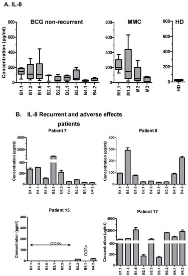 - De Boer, E.C.; Somogyi, L.; De Ruiter, G.J.W.; De Reijke, T.M.; Kurth, K.-H.; Schamhart, D.H.J.; Boer, E.C.; Ruiter, G.J.W.; Reijke, T.M. Role of interleukin-8 in onset of the immune response in intravesical BCG therapy for superficial bladder cancer. Urol. Res. 1997, 25, 31–34. [Google Scholar] [CrossRef][Green Version]