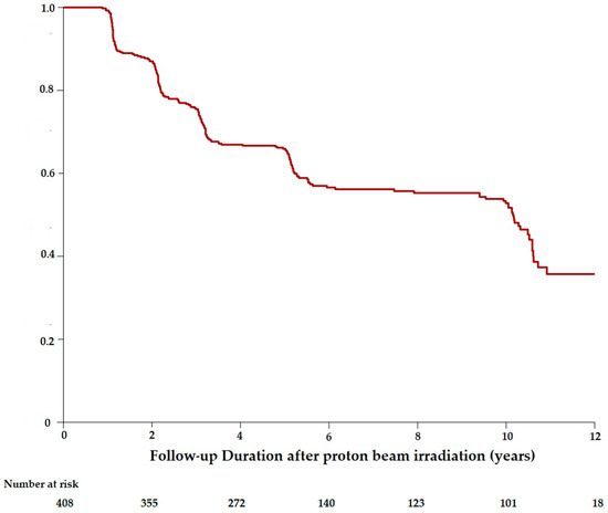 - Schönfeld, S.; Cordini, D.; Riechardt, A.I.; Seibel, I.; Willerding, G.; Bechrakis, N.E.; Moser, L.; Joussen, A.M. Proton beam therapy leads to excellent local control rates in choroidal melanoma in the intermediate fundus zone. Am. J. Ophthalmol. 2014, 158, 1184–1191. [Google Scholar]