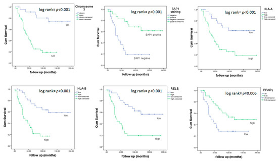 2.4.2. Associations between Survival in UM and Chromosome 3, BAP1 and Inflammatory Factors