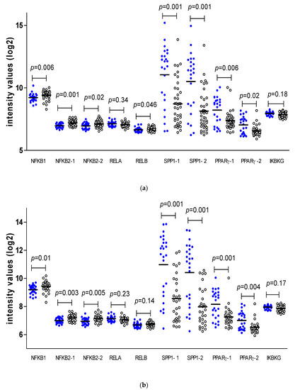 | NFKB1 | 9.19 | 9.42 | 0.018 | 9.16 | 9.26 | 0.37 |