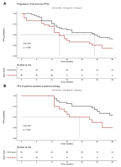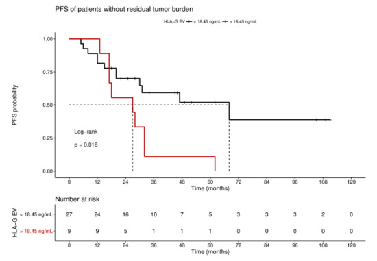 Schwich, E.; Rebmann, V.; Horn, P.A.; Celik, A.A.; Bade-Döding, C.; Kimmig, R.; Kasimir-Bauer, S.; Buderath, P. Vesicular-Bound HLA-G as a Predictive Marker for Disease Progression in Epithelial Ovarian Cancer. Cancers 2019, 11, 1106. https://doi.org/10.3390/cancers11081106