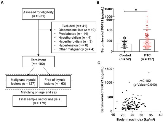 2.2. Higher Levels of FGF21 in Patients with PTC