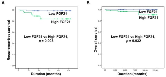 2.5. Correlations between FGF21 Levels and Recurrence-Free Survival and Overall Survival in Patients with PTC