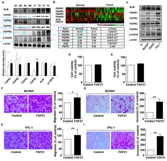 2.6. FGF21 Promotes Migration and Invasion of Thyroid Cancer Cell Lines