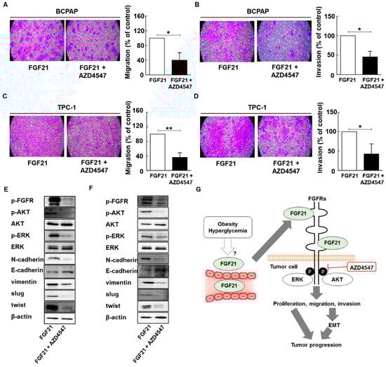 2.8. AZD4547 Attenuates the Effects of rFGF21 in Thyroid Cancer via Downregulation of FGFR Signaling