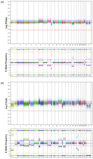 | (Partial) gain of chromosome | 6, 8, 21 | 2q, 6p, 8, 11, 17, 20q |