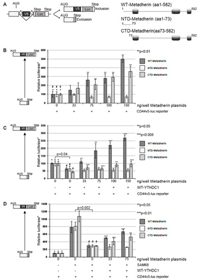 2.4. Metadherin Attenuates the Effect of Ythdc1 on Cd44v5-Luc Splicing