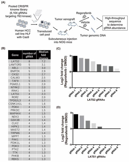 2.2. In Vivo Crispr Library Screen Identifies Lats1/2 Genes as Candidates Involved in Regorafenib Resistance in HCC