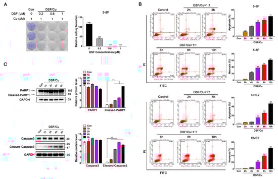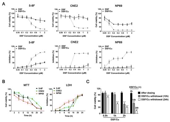 2.1. DSF/Cu Irreversibly Reduces the Viability of NPC Cells