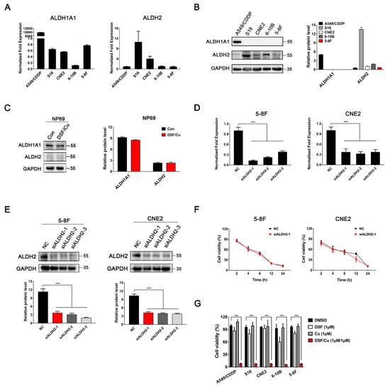 2.2. DSF/Cu Induces Both Apoptosis and Necrosis in NPC Cells by an ALDH-Independent Method