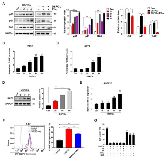 2.4. p53-Mediated Ferroptosis Plays an Important Role in DSF/Cu-Induced Cell Death
