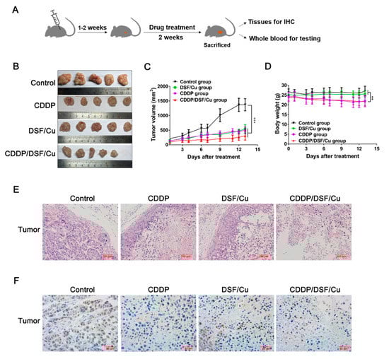 2.6. Antitumor Activity of DSF/Cu against NPC In Vivo