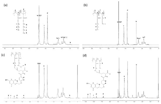 1H NMR spectrum of P(HEA-BMA) (a) and P(HEA-AMS) (b), F-P(HEA-BMA) (c) and F-P(HEA-AMS) (d).