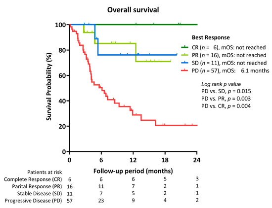 Overall survival (OS) of unresectable HCC according to treatment response to immune checkpoint inhibitors.