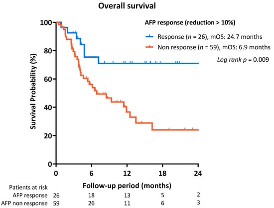OS of HCC patients according to AFP reduction within 4 weeks treatment of immune checkpoint inhibitors.